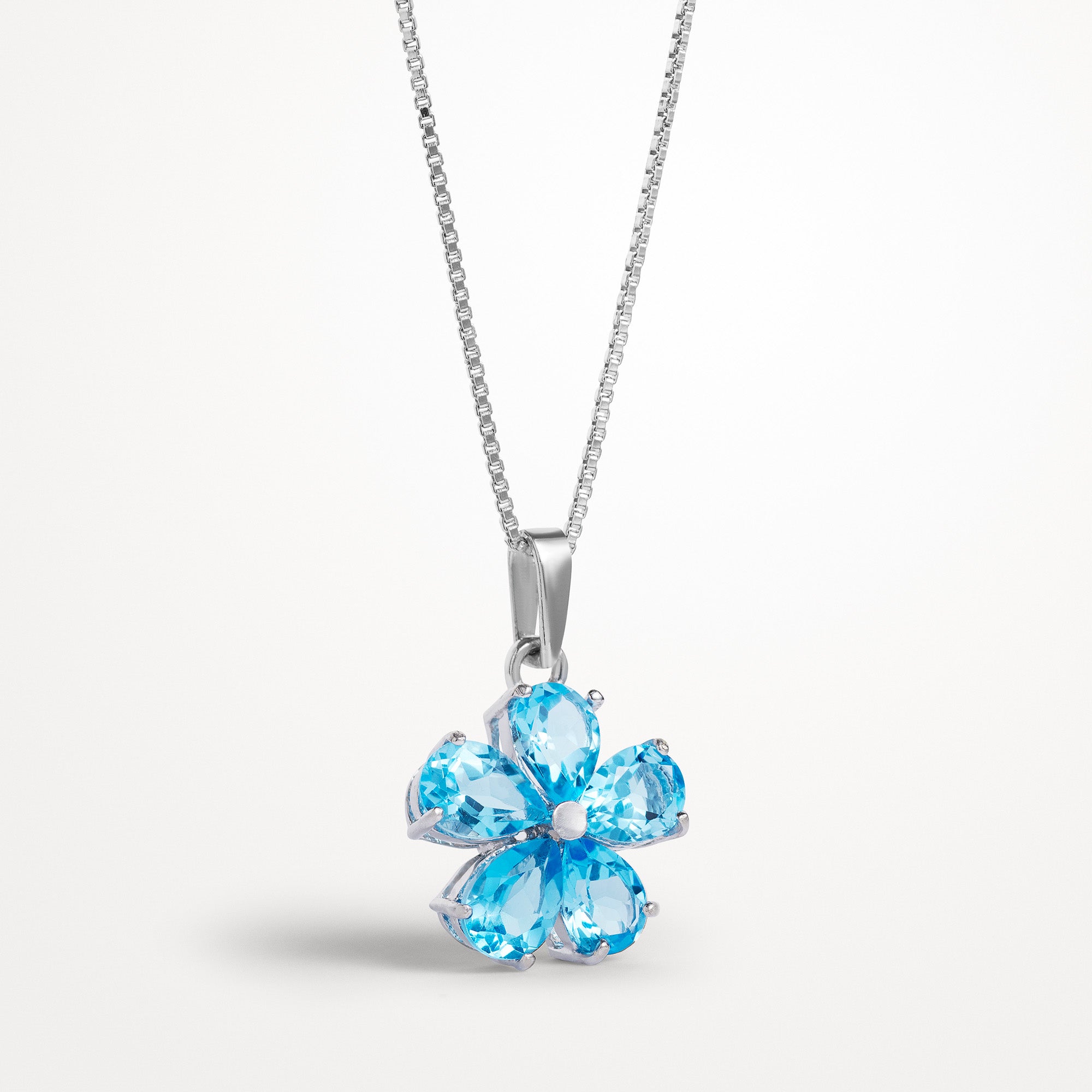 Looking for a unique and luxurious piece of jewellery? This Blue Topaz Pendant is the perfect accessory for any outfit. This pendant is made with high-quality blue topaz stones that come together to form a beautiful flower design. Minimal and elegant, this jewellery set is perfect for those who appreciate fine craftsmanship and classic style. The pendant is also set in a silver metal setting, giving it an elegant and sophisticated look. Whether you're wearing a casual outfit or something more formal, this pendant will add a touch of luxury and style.