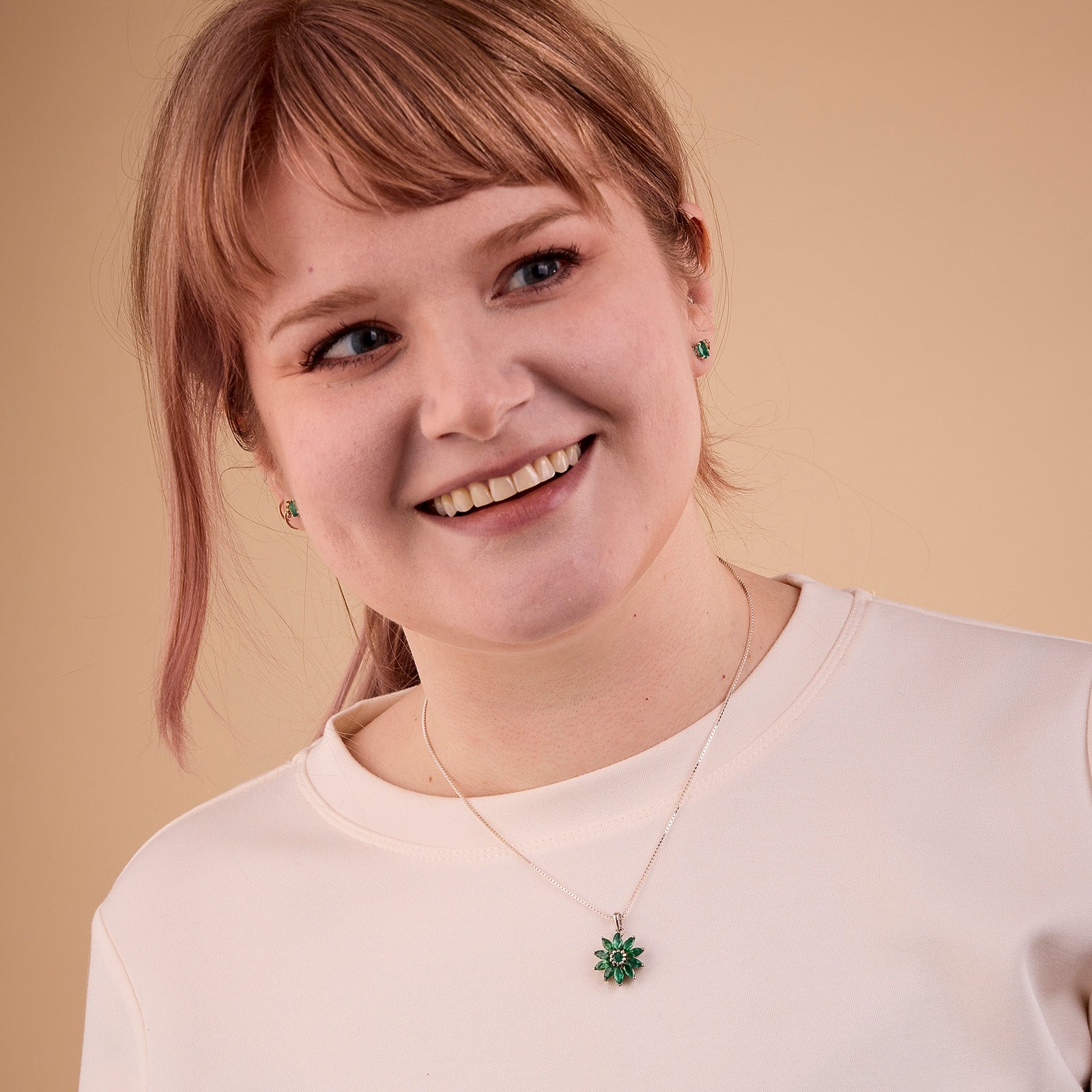 Add a touch of luxury to your outfit with this stunning Emerald Pendant. The beautiful green sunflower design is not only eye-catching, but it also symbolises vitality and freshness and adding a touch of luxury to your look. The perfect accessory for any special occasion, this pendant will make you feel like the queen of the room. It will also add a touch of elegance and sophistication to your everyday style. If you're looking for a gift for someone special, this is the perfect choice. It's sure to make them feel loved, appreciated, and – most importantly – vibrant and alive.