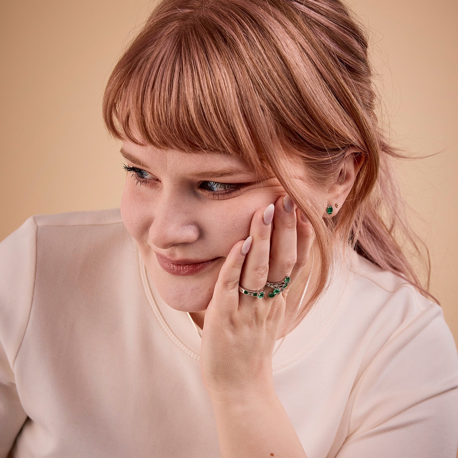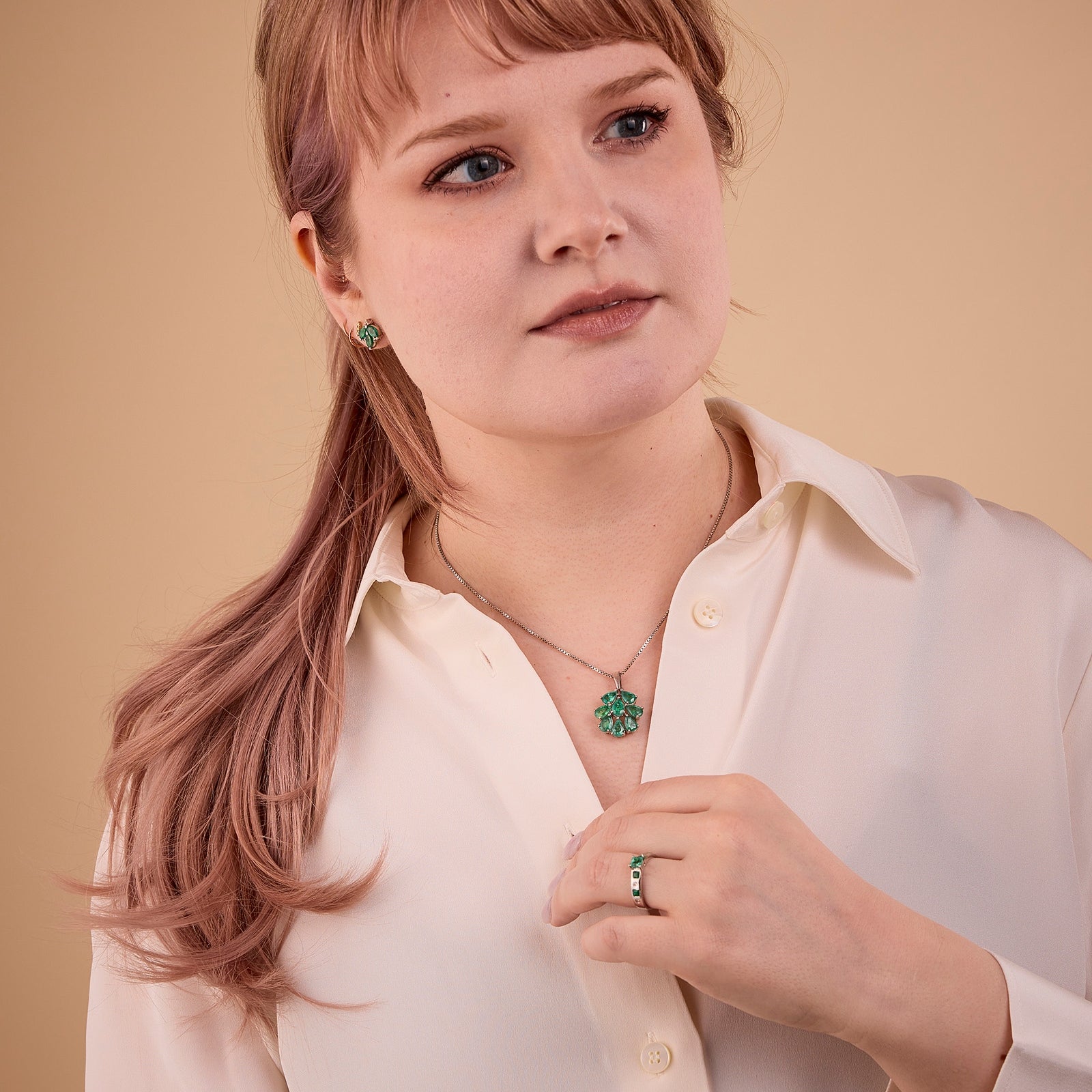 1 Emerald Square 4 mm - 0.41 Ct 4 Emerald Square 3 mm - 0.80 Ct 4 Diamond Round 1.5 mm - 0.09 Ct