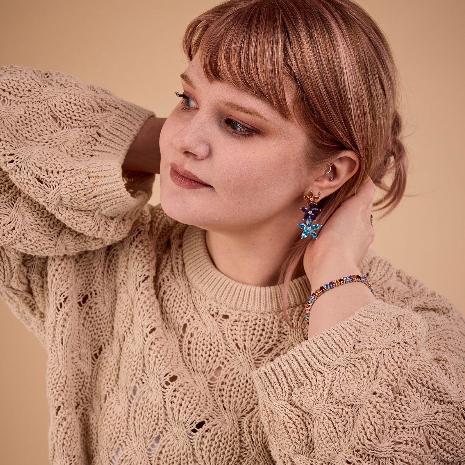 This colorful bracelet can boost your positive energy in an instant. The beautiful mix of four different stones creates a look that is both playful and eye-catching. The bracelet adds a pop of colour to any outfit. So nice with just a pair of jeans and a white shirt.