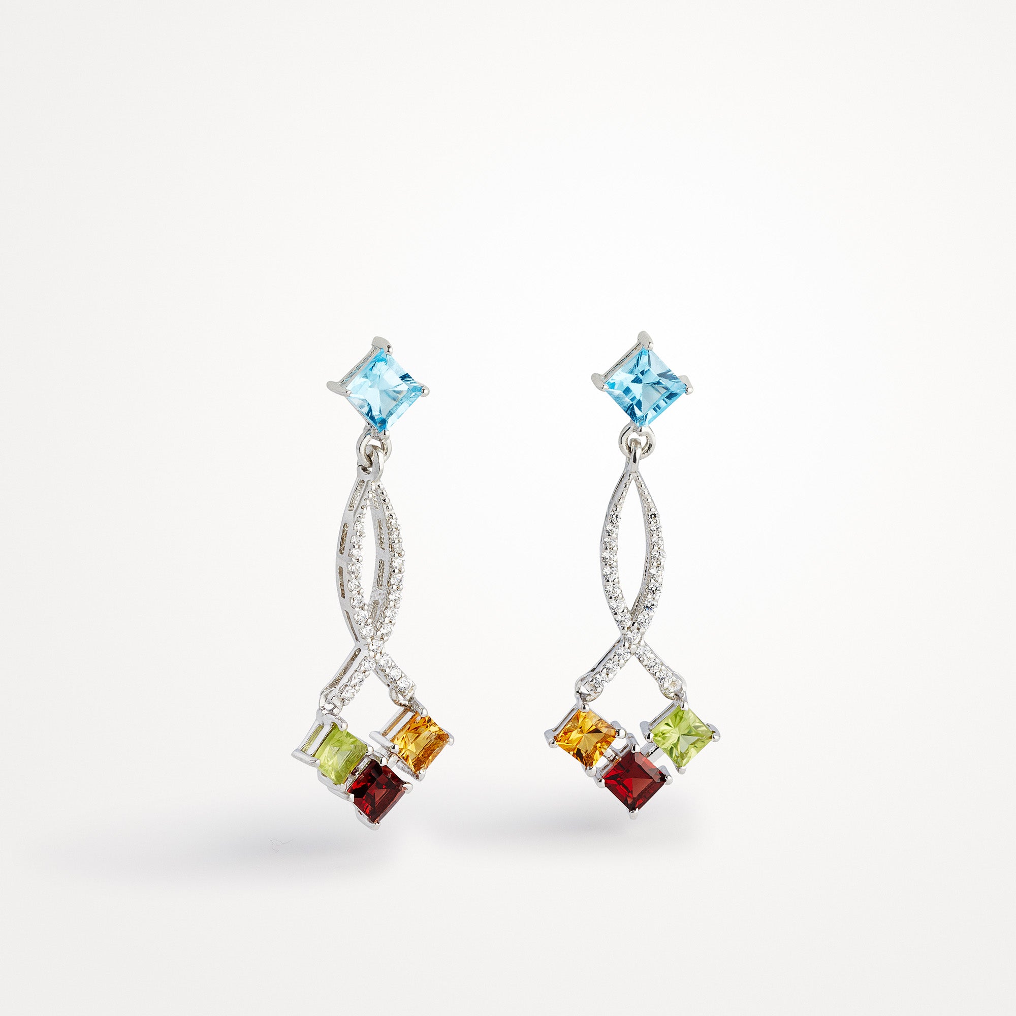 These earrings are out of this world! The beautiful mix of four different stones sparkle together with shimmering silver and cubic zirconia, creating a look that is both chic and luxurious. Together they make the perfect pair of earrings to add a pop of colour to any outfit. They are also perfect for those who appreciate fine craftsmanship and unique design that becomes more beautiful over time together with different outfits