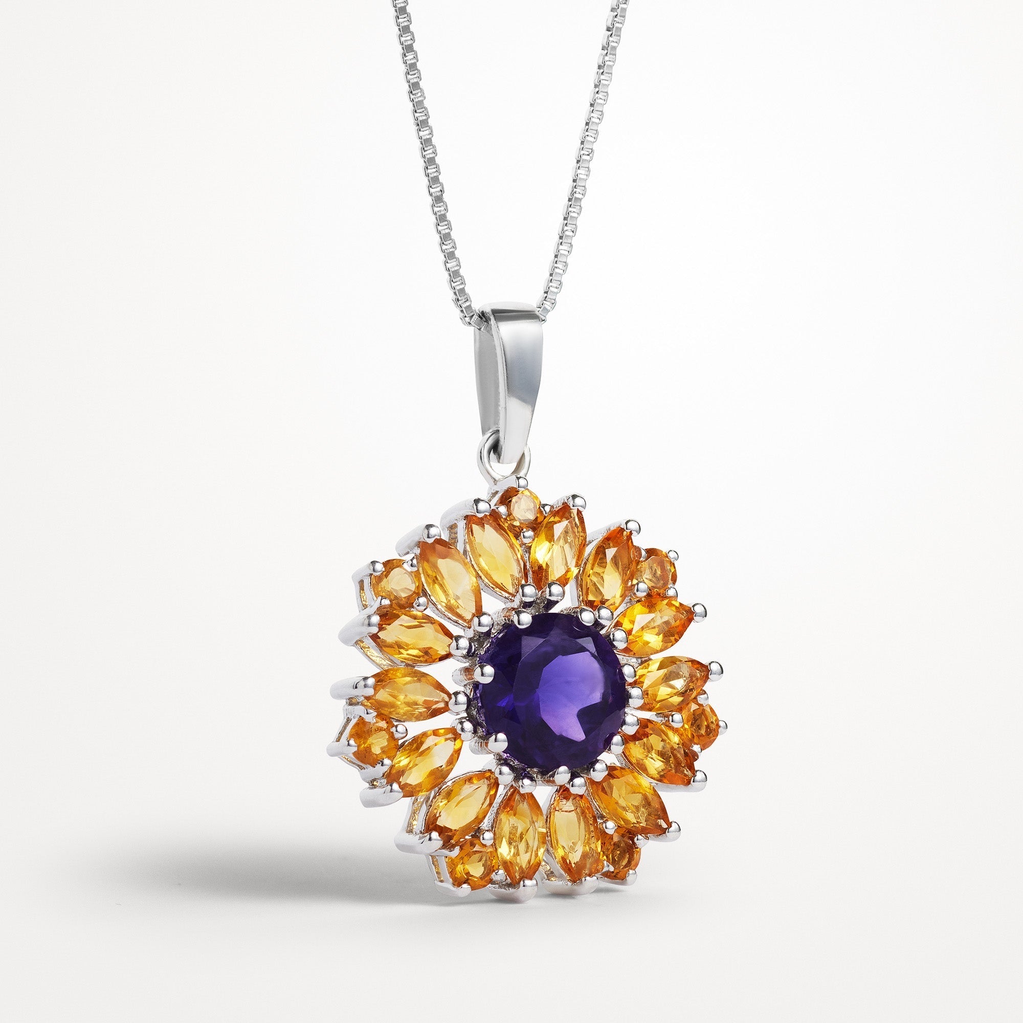 Introducing the Mixed Pendant Glow, a luxurious and intricate piece that is sure to add a touch of elegance to any outfit. This pendant is crafted with beautiful Amethyst and Citrine stones, which come together to form a stunning design. The glow from the stones is simply mesmerising, and it's sure to attract admiring glances. The Mixed Pendant Glow necklace is more than just a fashion accessory; it is also a powerful source of positive energy. Amethyst is known for its healing and spiritual properties, while Citrine is renowned for its ability to promote success and abundance. By wearing this pendant, you will not only look fabulous, but you will also enjoy the benefits of these two powerful stones.