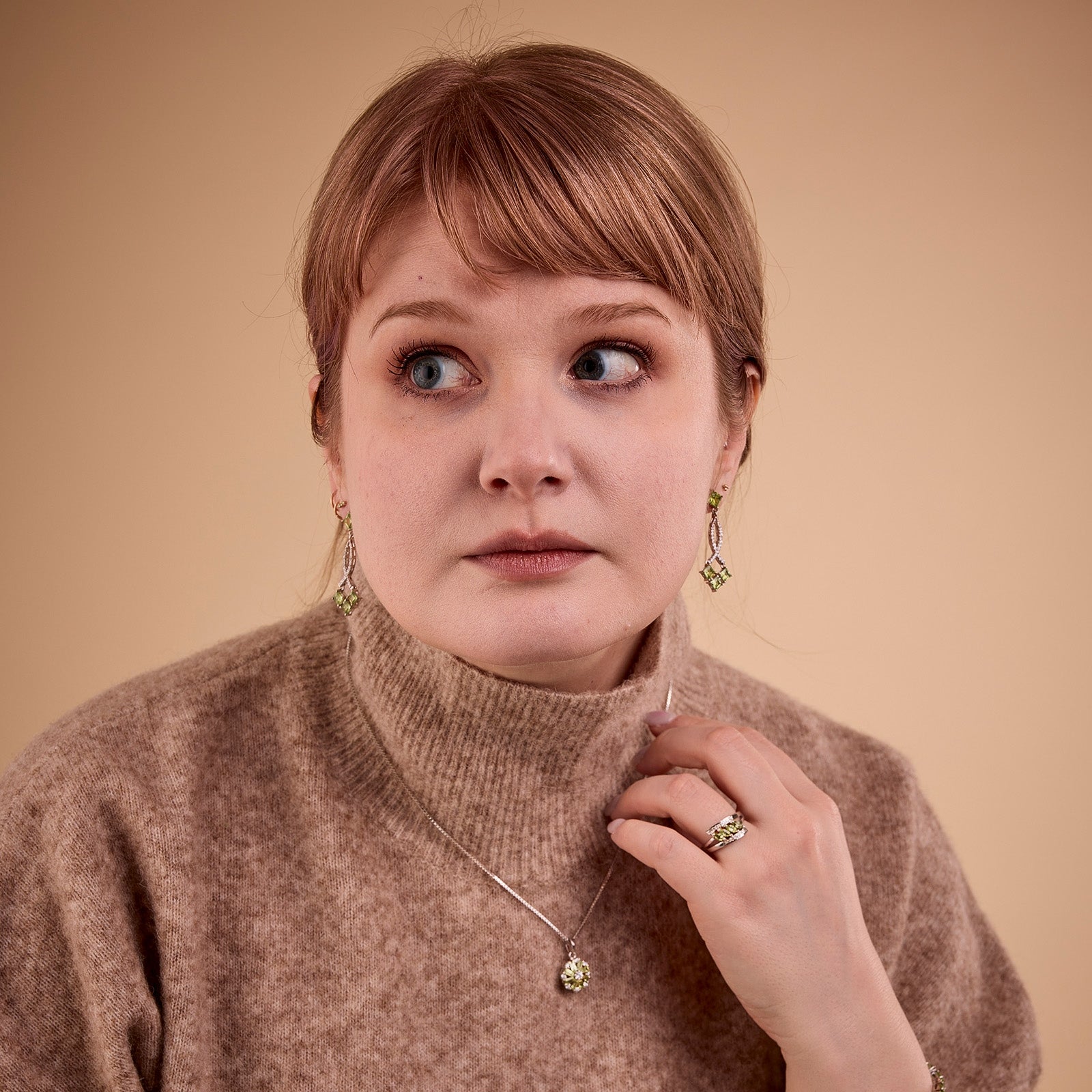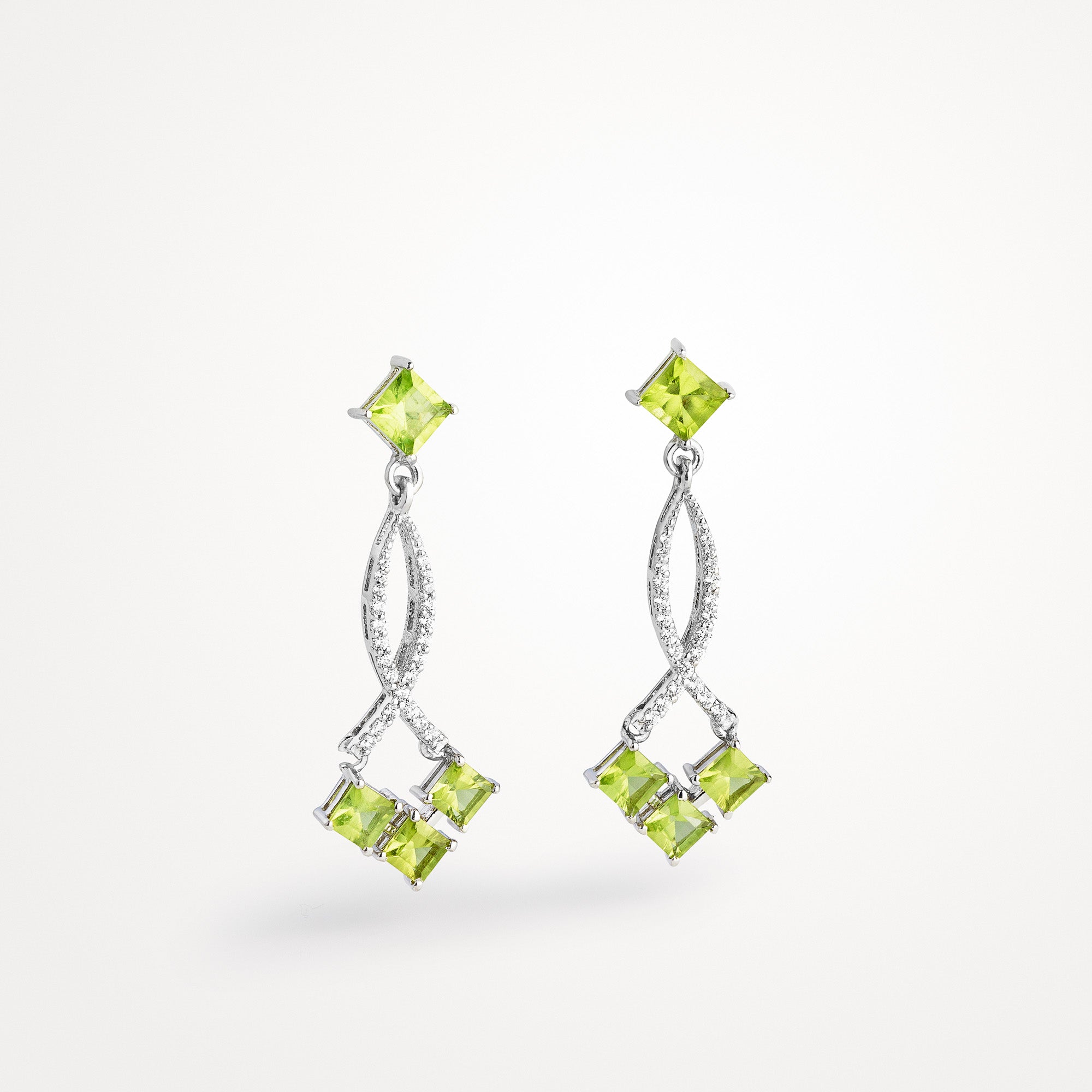 These earrings are out of this world! The beautiful peridot stones sparkle together with shimmering silver and cubic zirconia, creating a look that is both chic and luxurious. The peridot stone is said to represent courage and fortitude. Together they make the perfect pair of earrings to add a pop of colour to any outfit. They are also perfect for those who appreciate fine craftsmanship and luxury.