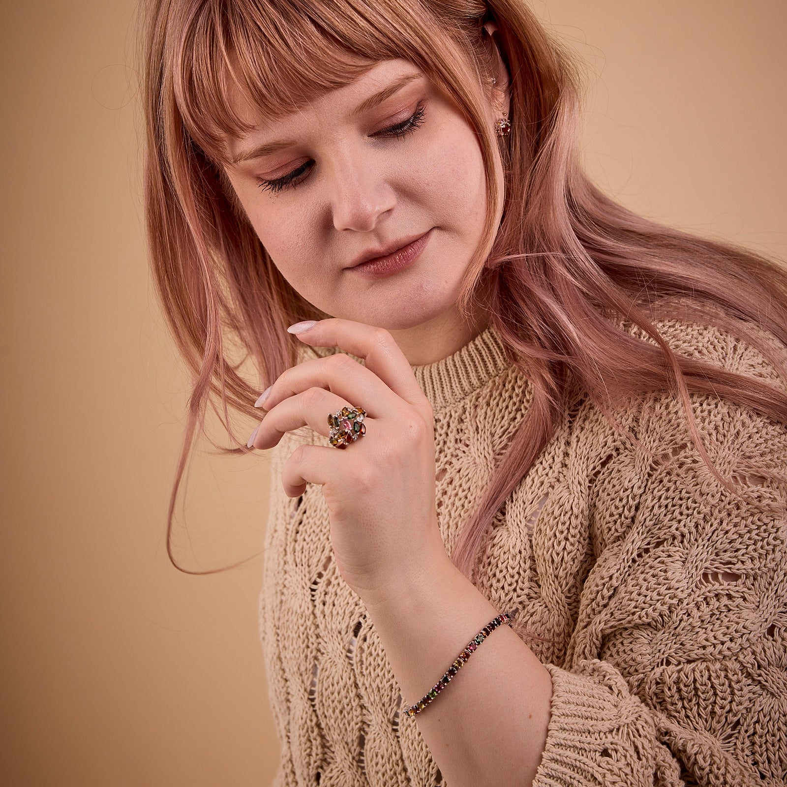 Tolerance is the key to harmony, and this bracelet has it in abundance. Featuring a stunning array of Tourmaline stones in a variety of captivating hues, this bracelet is expertly crafted to perfection. The result is a bracelet that is both beautiful and unique. Whether you're dressing up for a special occasion or simply accenting your casual style, this bracelet makes a beautiful statement. The versatile design can be worn alone or stacked with other bracelets for a chic, layered look. The Tourmaline Bracelet Tolerance is the perfect way to add a touch of luxury to your everyday look.