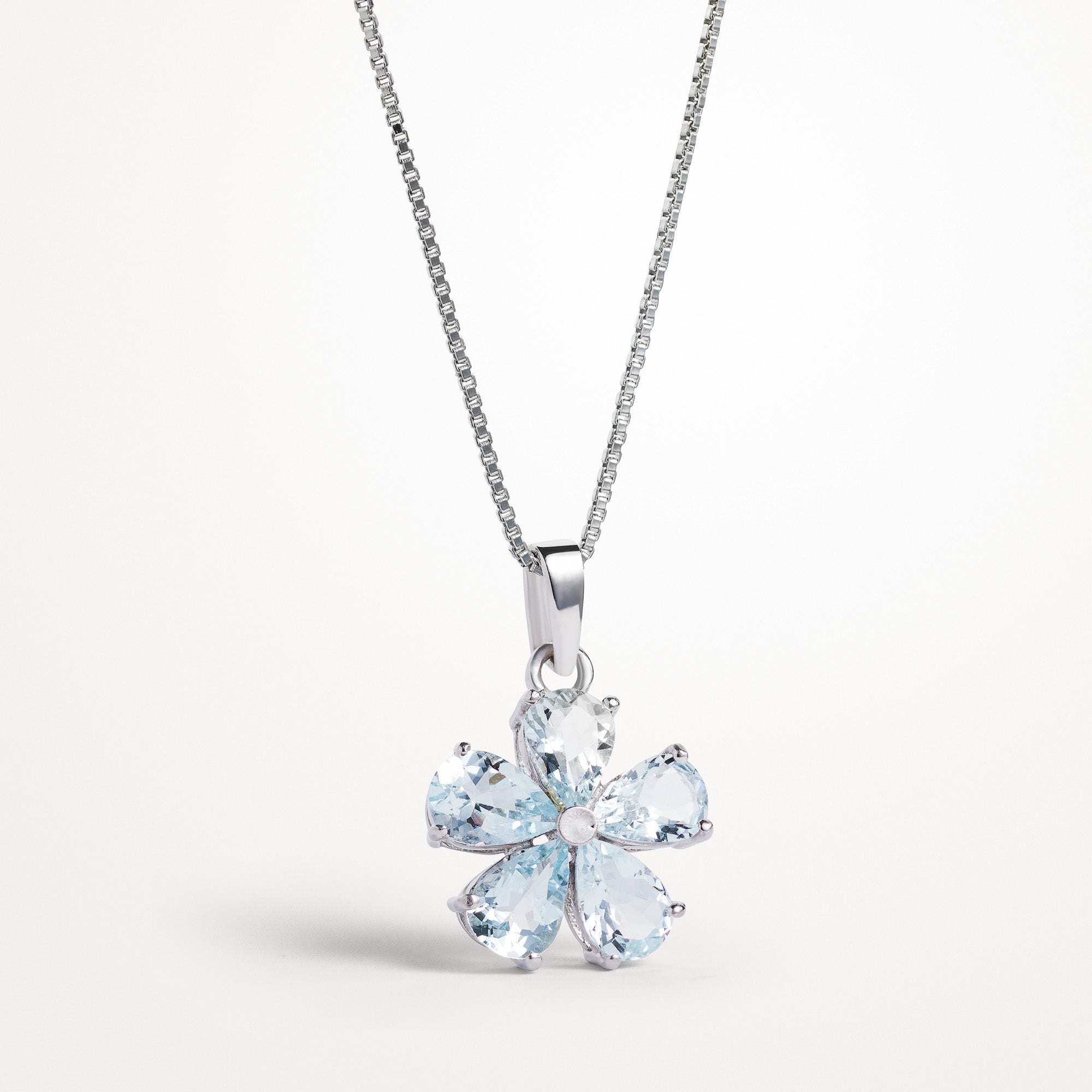 Introducing the Aquamarine Necklace Bloom, a stunning piece of jewellery that is perfect for any occasion. This pendant is made with an exquisite collection of hand-cut aquamarines, making it a truly unique and special piece. The pendant is also inspired by the beauty of nature, making it a perfect gift for someone who loves the outdoors. With its peaceful and calming colour, this necklace is also perfect for those looking for a piece of jewellery with spiritual meaning. Whether you are looking for a luxury gift for someone special or a beautiful piece of jewellery to add to your own collection, the Aquamarine Necklace Bloom is sure to impress and show your loved ones how much you care.