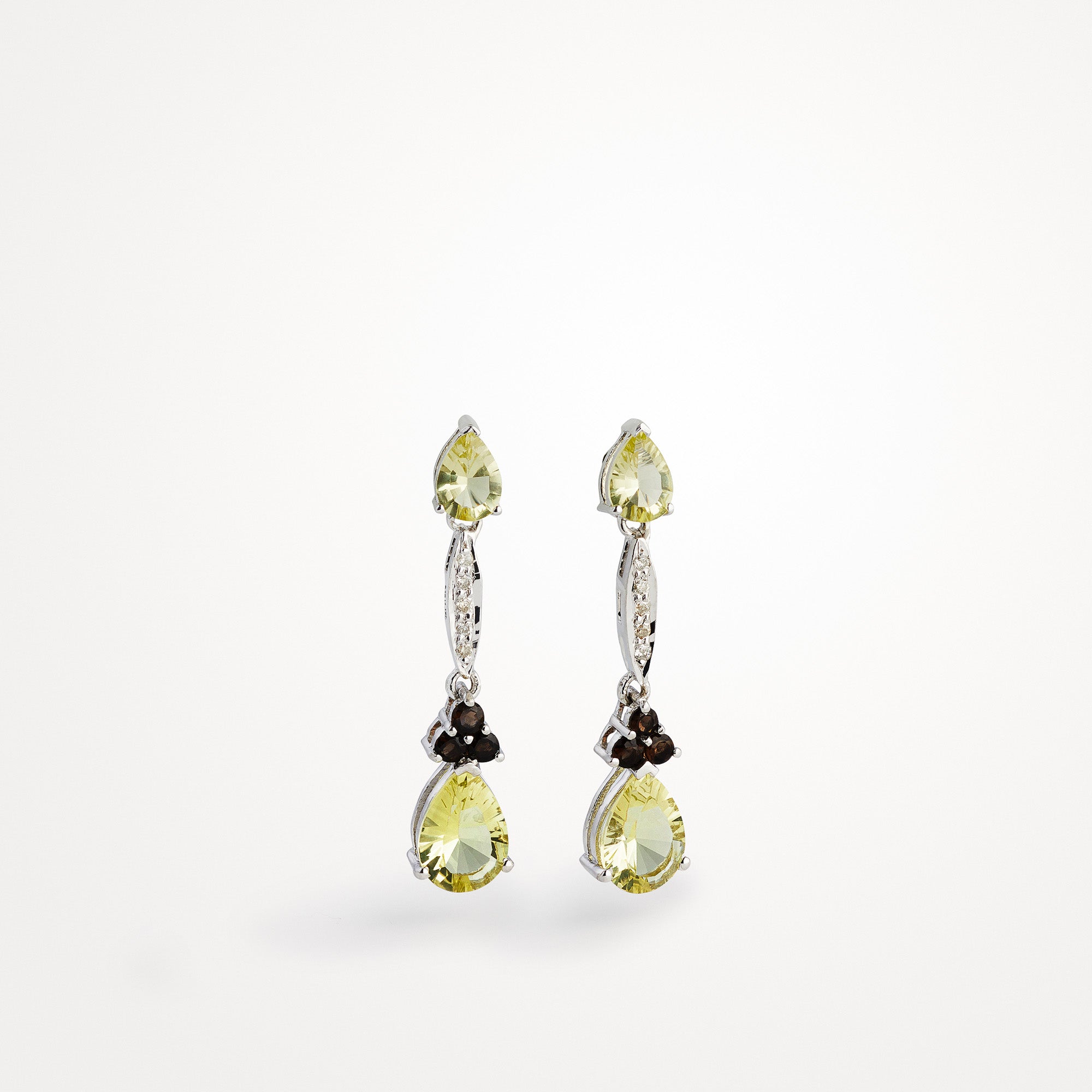 These earrings are truly special, and they're sure to add a touch of brilliance to any outfit. These earrings are made of the finest smoke topaz, lemon topaz and diamonds, which combine to create a dazzling display of light and brilliance. Each stone is hand-selected for its unparalleled quality, and then expertly set in place by our skilled artisans. The result is a piece of jewellerythat is truly unique and absolutely breathtaking.