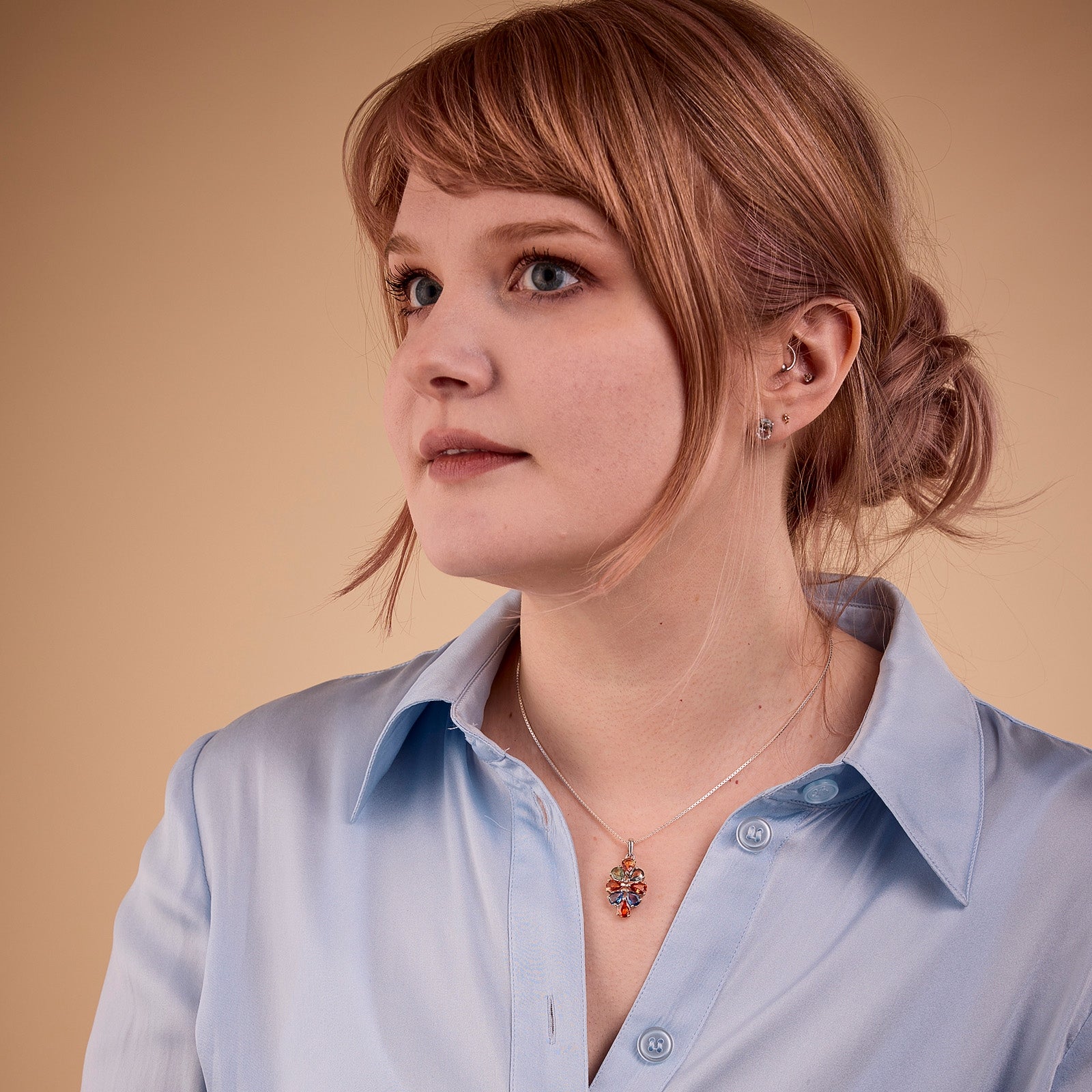 This Multi Sapphire Pendant Celebration necklace adds luxury to your wardrobe. The beautiful sapphires are set in a stunning design, and the sparkle from the stones is simply unforgettable. The necklace is perfect for those who love colour and appreciate the power of gemstones. The pendant features a collection of colourful multi-sapphire stones, which are believed to release the power of celebration. Enjoy the benefits of these beautiful stones by wearing this luxurious pendant. You'll love the way you look and feel!